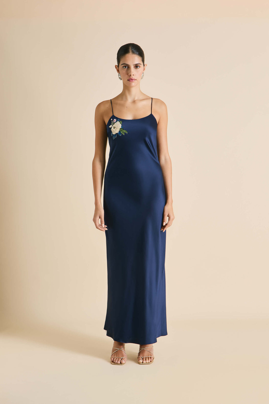 Olympia Harmonies Navy Embellished Dress in Silk Satin