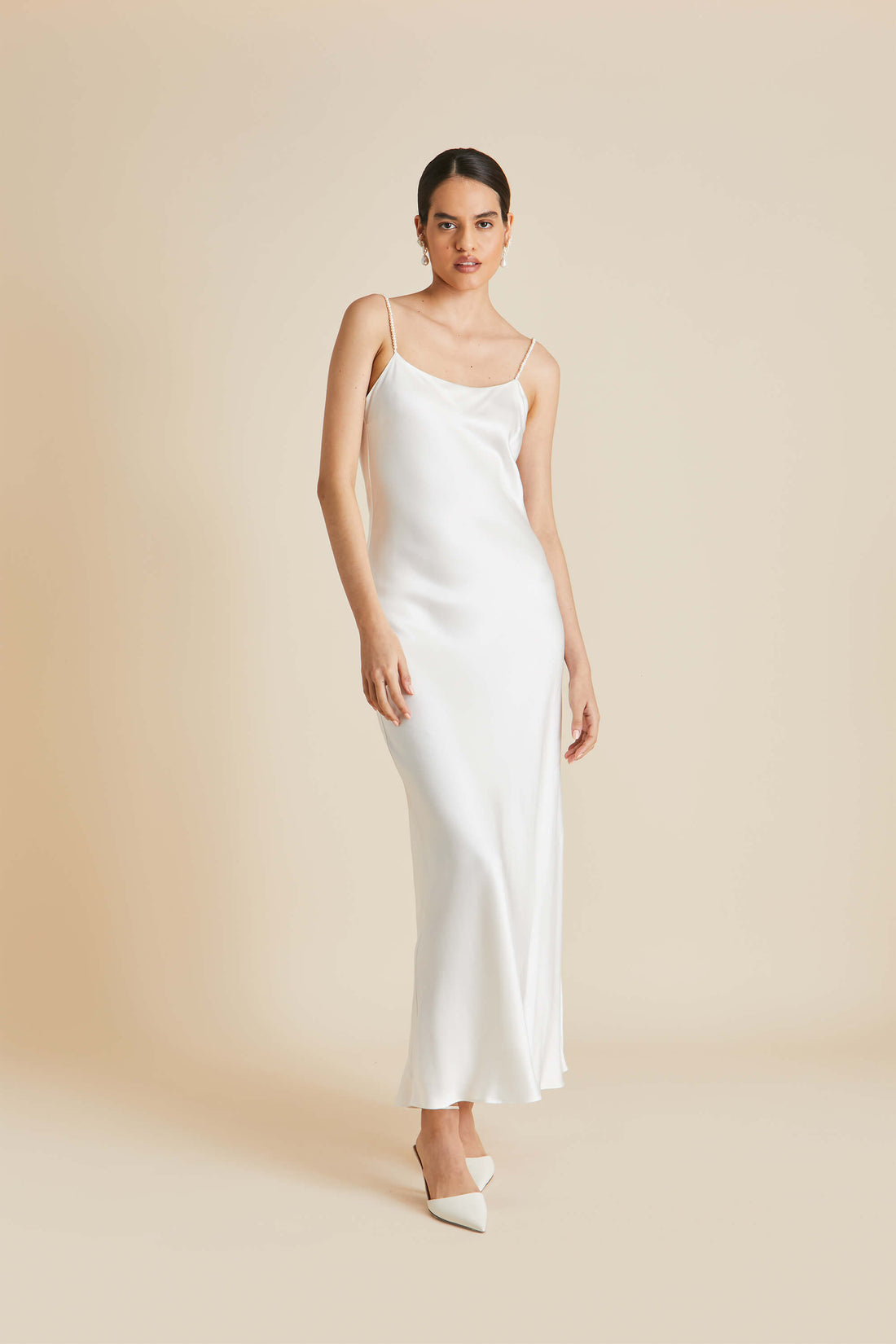Olympia Ivory Pearl Slip Dress in Silk Satin