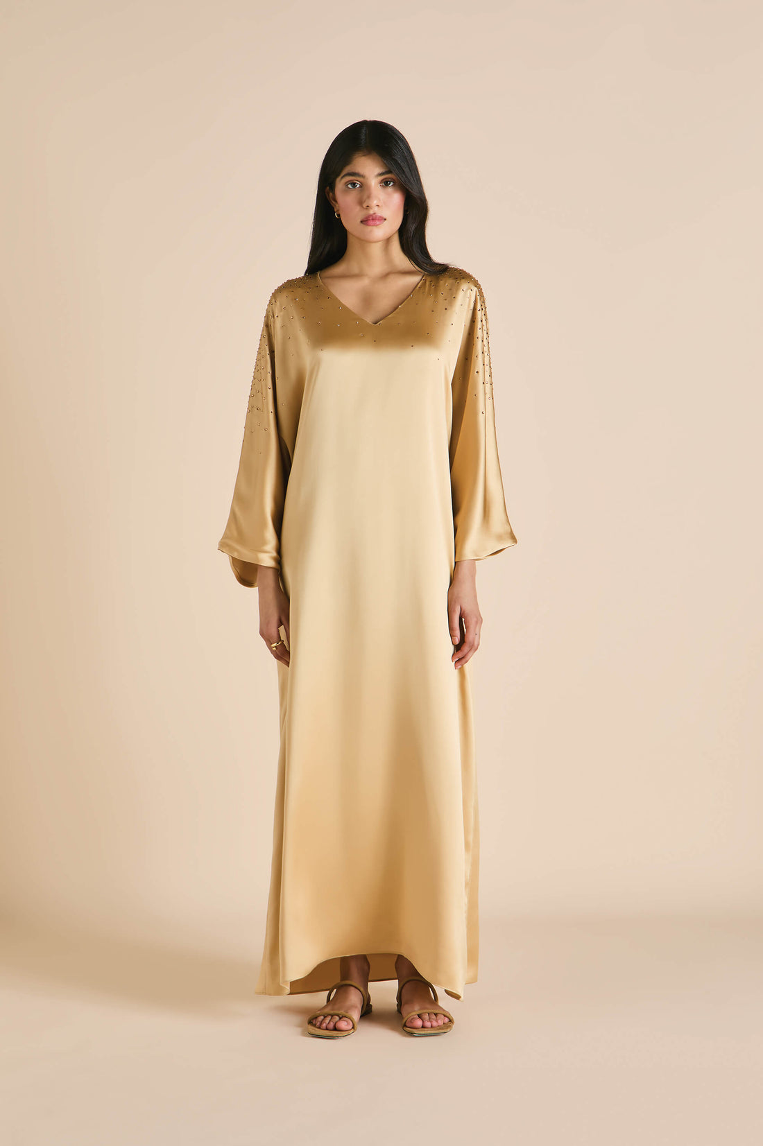 Vreeland Lune Caramel Embellished Dress in Silk Satin