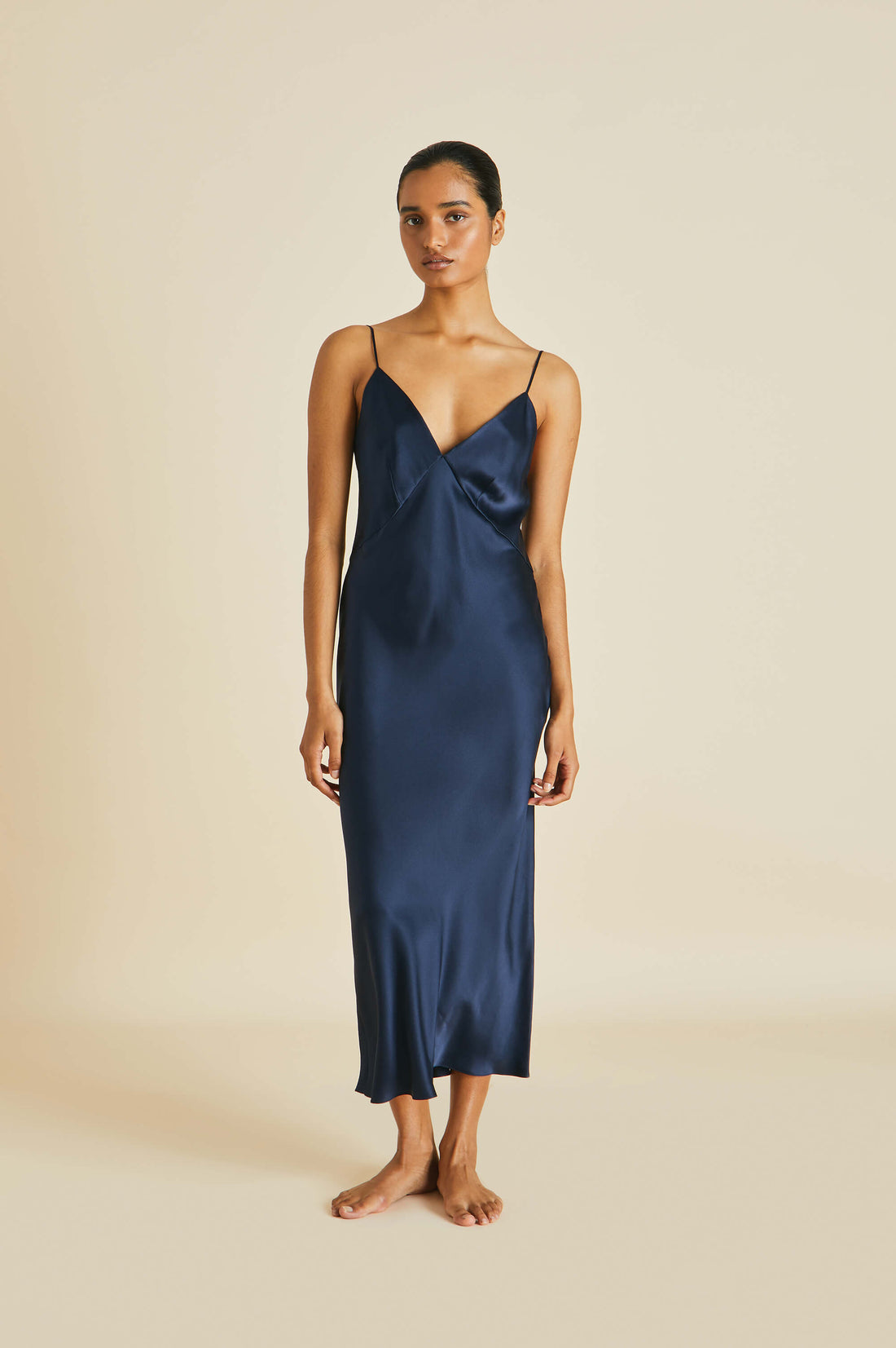 Venus Madison Navy Floral Slip Dress in Silk Satin
