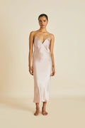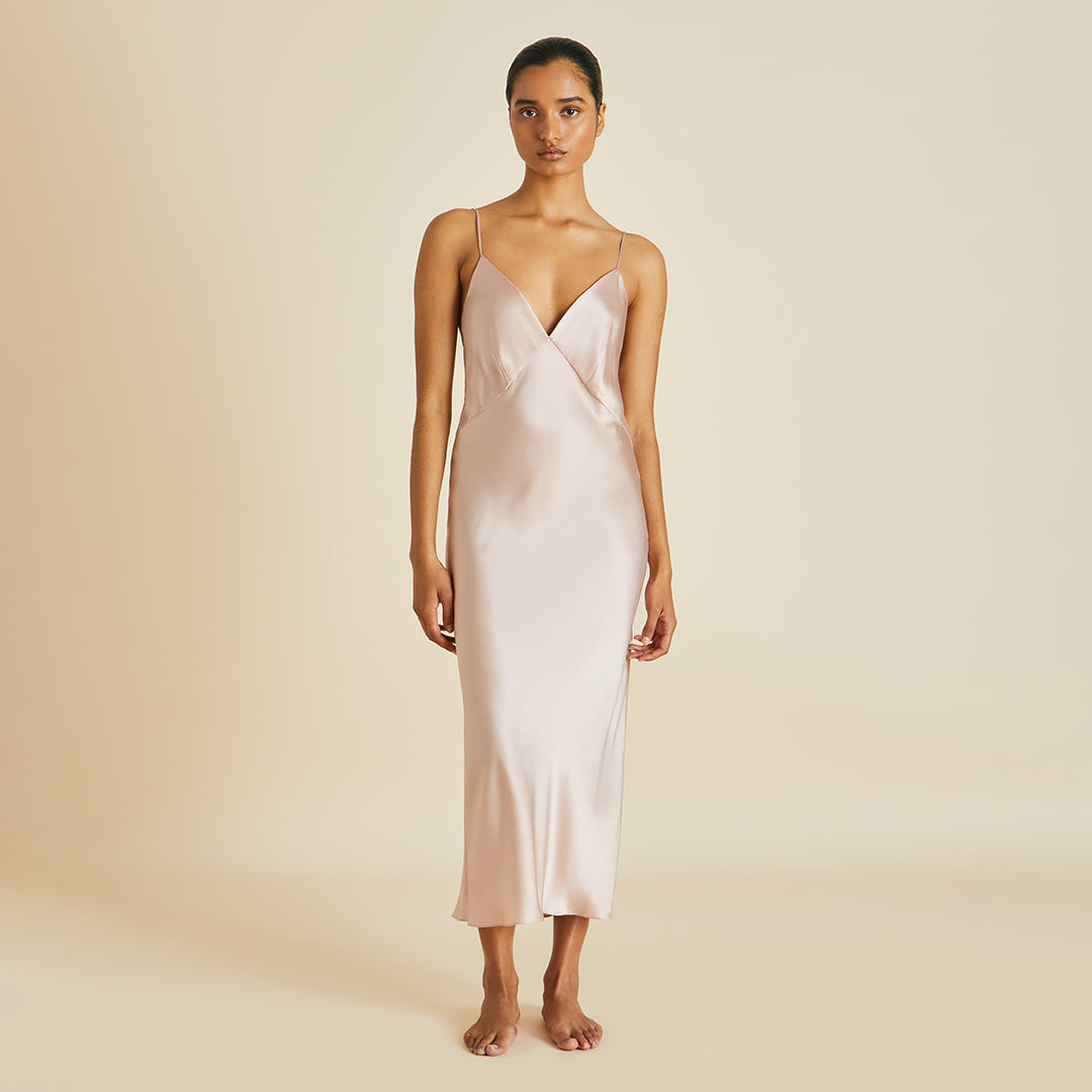 At Olivia von Halle, there is nothing simple about the slip dress. The Issa Oyster elevates the silk slip dress into a statement item of its own, creating a masterclass of modern luxury in the finest silk and elegant, elevated silhouette. The ultimate in sophistication, consider this the perfect bridesmaid’s dress.