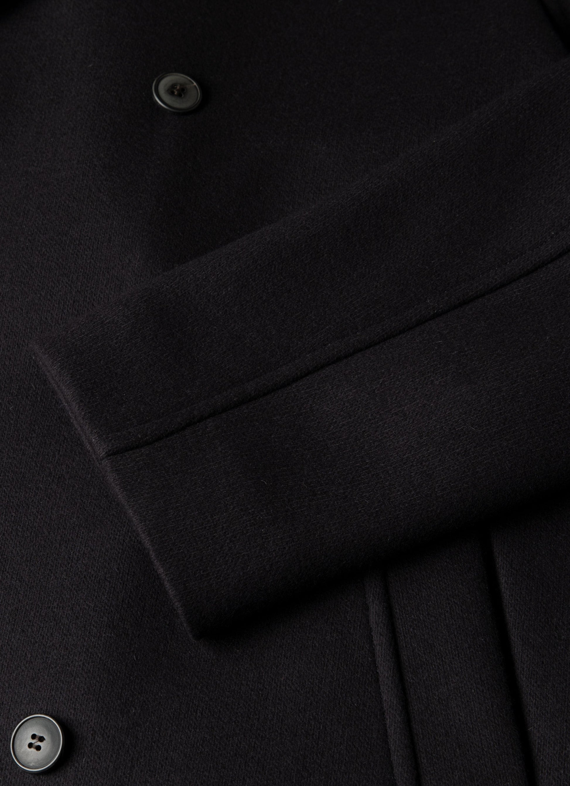 Our modern take on the traditional pea coat, crafted from exceptionally soft boiled wool jersey sourced from a renowned Italian mill. With minimal detailing and a clean, contemporary silhouette, it features a double-breasted front, two internal pockets, and a mid-length cut with a back vent for ease of movement.