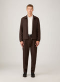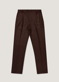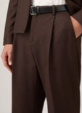 A single-pleat trouser crafted from exceptionally soft, smooth boiled wool sourced from a renowned Italian mill. Cut in a regular fit, it features a tailored waistband with notch detailing, slanted side pockets, and rear welt pockets. Pair with the matching zip jacket for a contemporary, refined set.