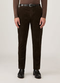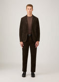 Crafted from soft French corduroy that has been garment dyed for a broken-in feel, this trouser features a regular fit with a straight leg. Designed with an internal tailored waistband, notch detailing, and two back pockets. Combining classic tailoring with modern comfort, it pairs perfectly with the matching jacket for a refined winter look, or can be worn casually with a T-shirt and jumper.