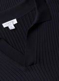 Men's Fine Rib Silk Cotton Polo Shirt in Navy