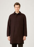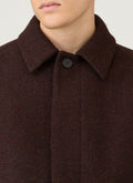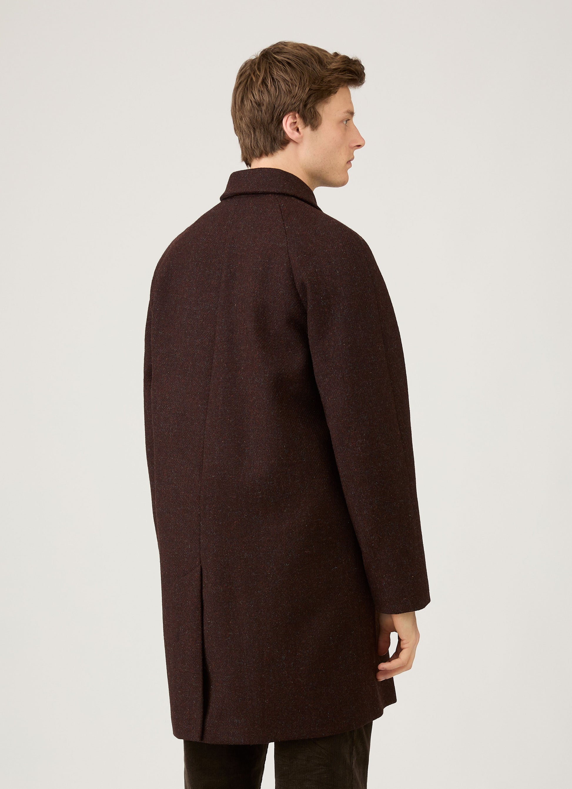 A warm, easy-to-wear coat crafted from British-woven Harris Tweed, with classic car coat styling. Cut in a relaxed fit with a mid-length and comfortable saddle shoulder, it features a concealed horn button closure with an exposed top button at the neckline, along with angled welt pockets. Fully lined and ideal for winter layering, it pairs effortlessly with a Scottish lambswool jumper or a lightweight jacket.