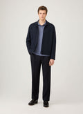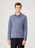 Men's Long Sleeve Classic Jersey Polo Shirt in Selvedge Blue