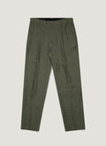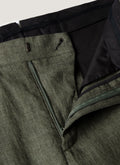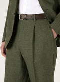 A smart linen trouser with a regular fit and single pleat front, crafted in a luxuriously lightweight linen sourced from a renowned Italian mill. Featuring a tailored waistband with notch detailing for added comfort, slanted side pockets with a single rear welt pocket. Pair with our matching linen blazer for a versatile modern suit.