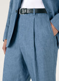 Men's Pleated Linen Trouser in Soft Denim Melange