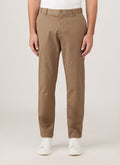 A regular-fit chino with a mid-to-low rise and a classic flat-front design. Crafted from lightweight Italian cotton with a touch of stretch for added comfort, and garment dyed for a soft, casual feel. Finished with a tailored waistband, button closure, zip fly, and single welt back pockets.