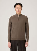 An elevated half-zip jumper, crafted from a blend of Sea Island cotton and cashmere. The cashmere offers a luxurious softness and warmth, while the Sea Island cotton, the world’s finest and rarest cotton, brings a unique smoothness. Designed with a regular fit and classic saddle shoulder detail, it’s a refined layering piece for the colder months.