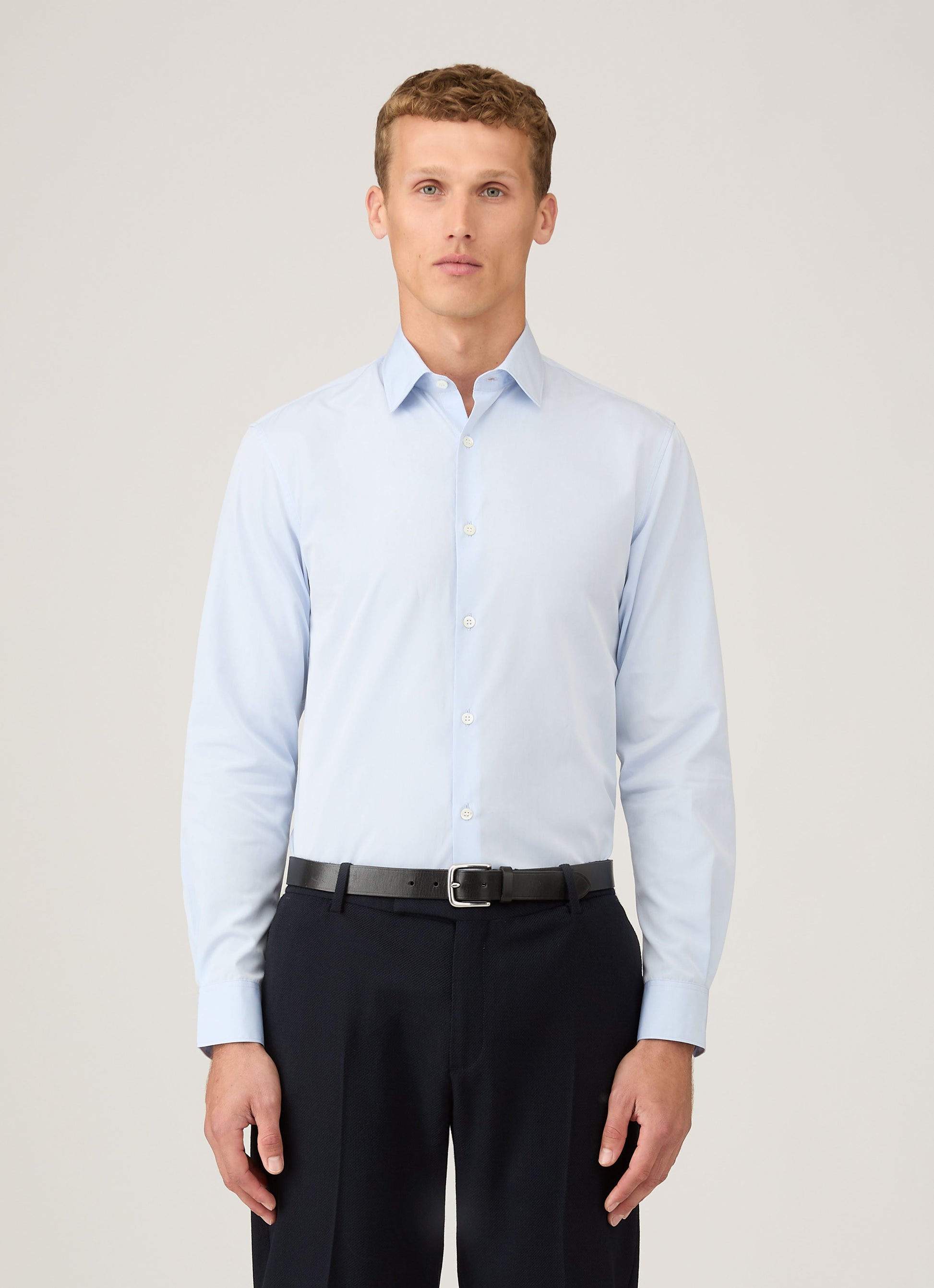 Made from our rare, long-staple Sea Island cotton the shirt feels smooth and cool against the skin. This shirt is deftly tailored on the shoulders and body for a regular fit. The traditional full button-through closure and cuffs signal formality, while the removable collar stays allow for a more relaxed approach. Shell buttons add a refined finish detail.