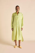 Phoebe Celery Green Shirt Dress in Linen-Silk