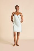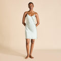 Slip into our Venus Paper, a drink-of-water dress in a crisp, clean shade of blue. Her fluid drape is all thanks to our signature 19 momme silk and a deceptively minimal silhouette that's designed to evoke sleek nineties styles. Pair with slicked hair and sharp heels for dancing after dark, or layer under a lavish Olivia von Halle robe for an evening of idling.