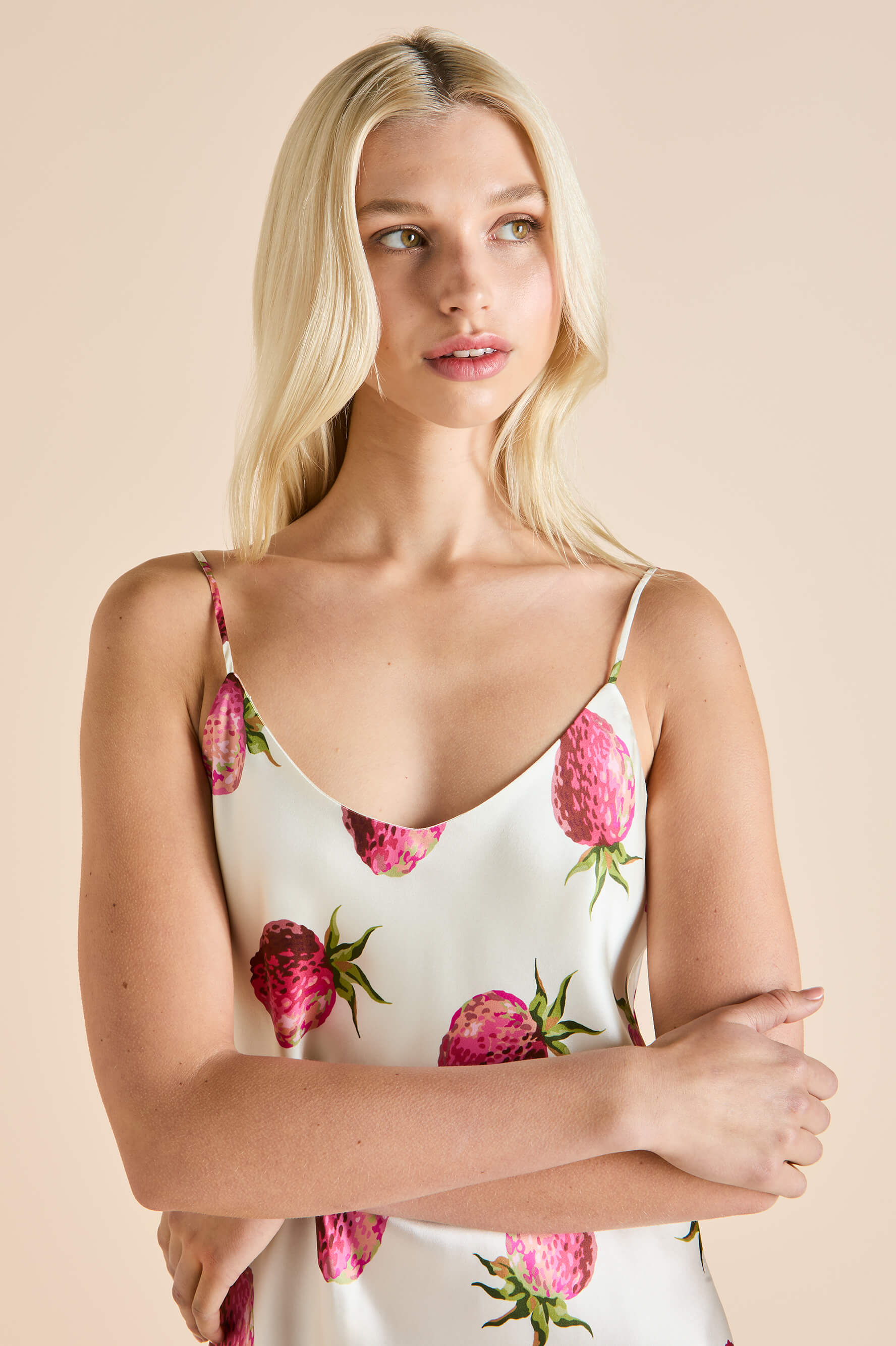 Venus Blythe Ivory Strawberry Slip Dress in Silk Satin