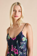 Venus Madison Navy Floral Slip Dress in Silk Satin
