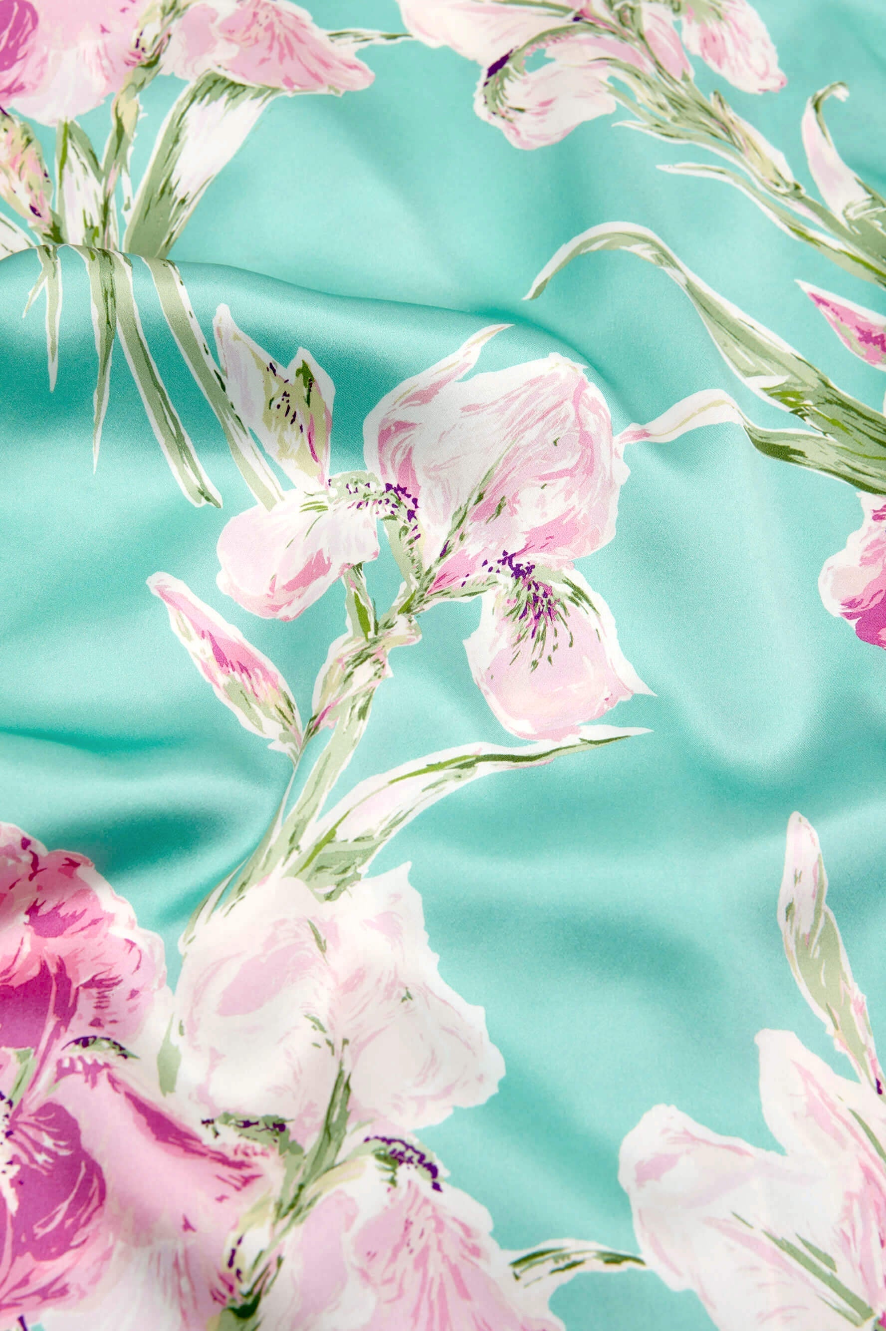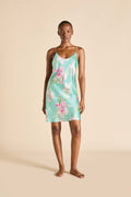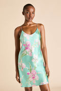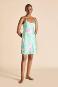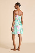 Venus Abalone Turquoise Floral Slip Dress in Silk Satin