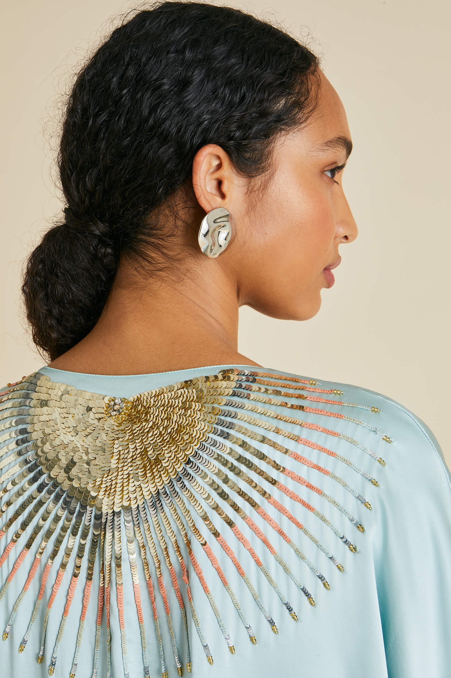 Vreeland Incantation Blue Embellished Dress in Sandwashed Silk